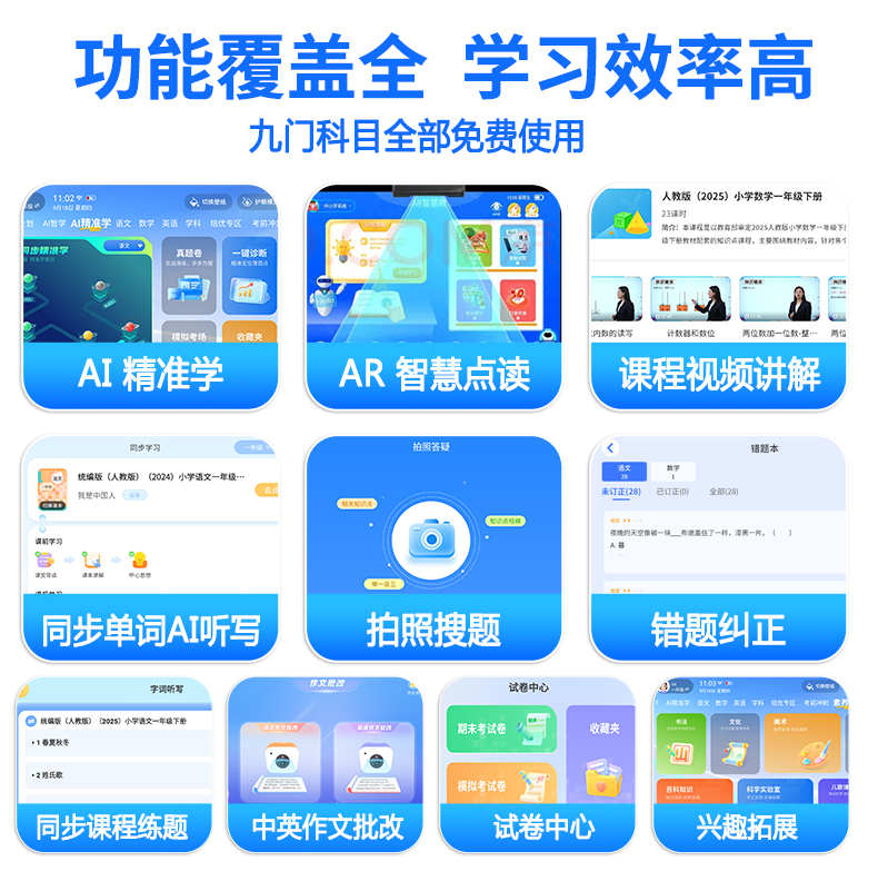春苗护航AI智能学习机六大同步功能实现了 “课本搬家” 式的便捷学习: